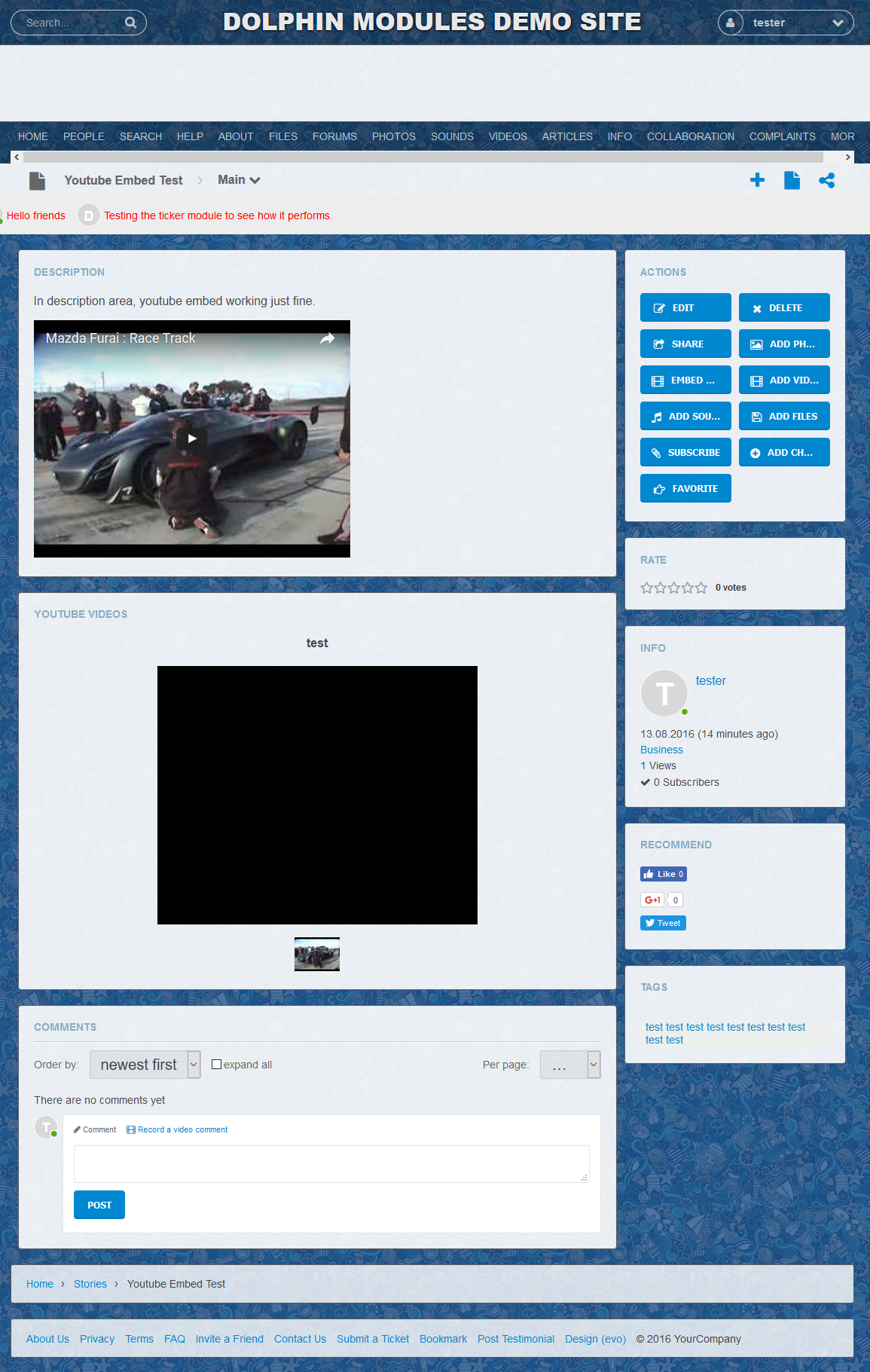 Youtube embed video is not displaying at all. I have tested with your demo site and it is not working as well. Please fix problem and update module. Thanks |