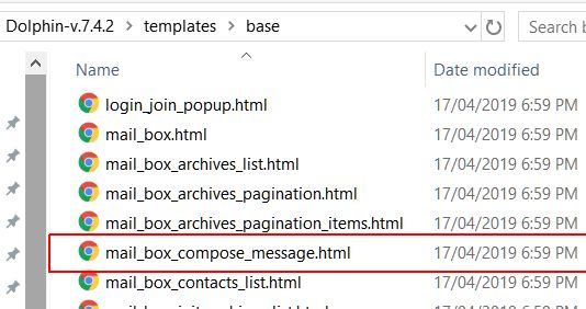 Sie haben Agent Ransack möglicherweise falsch eingerichtet, aber Leonids hat Ihnen mitgeteilt, wo Sie die Datei finden: / templates / base / mail_box_compose_message.html Wenn nicht, fehlt sonst noch? I had dolphin 7.4.2 downloaded to my PC and searched with Ransack. strange, he had not found the file. Anyway, Thanks, Johnk42, I found now. Otherwise, everything is probably there. You know the saying: A blind chicken sometimes finds a grain. |