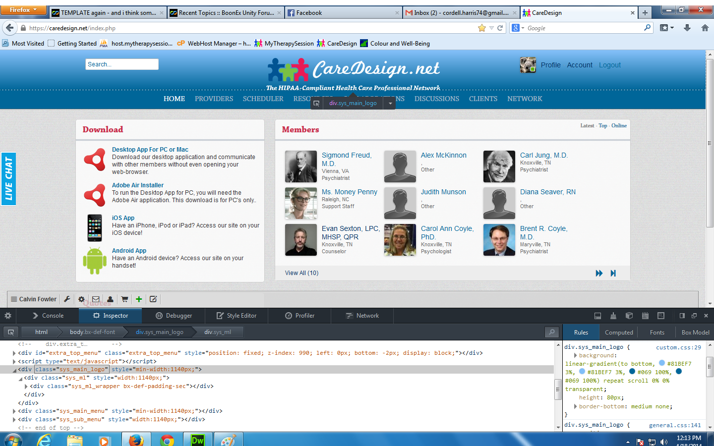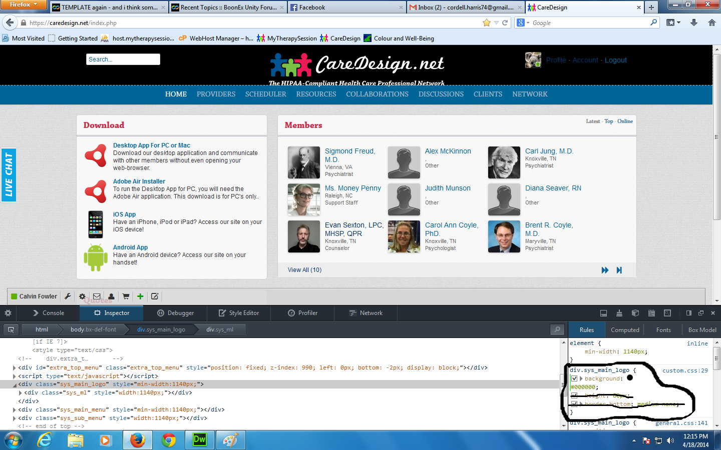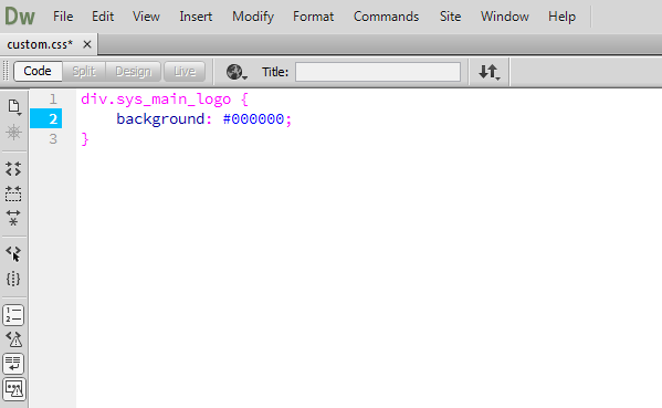 Example: I want to change my sys main logo section from the current color to black (current look.png). I open the element inspector and highlight the section I want to change so that the css styling shows on the right side (sys main logo.png). You can play with making different changes and see what your site will look like. Once you have gotten the desired results, copy the css styling from the right to your custom.css file. But keep in mind - do not include things that are not changed (sys menu logo changed.png and custom css file.png).
