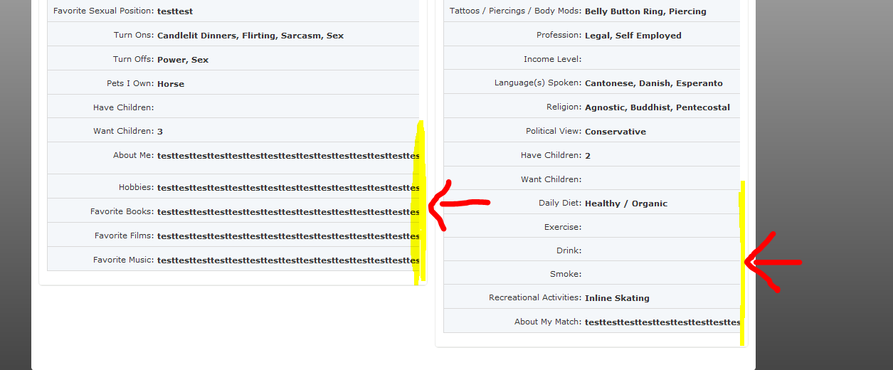 I am having a problem with the text being chopped off at the end of the sentence, in the "PROFILE INFO" section. Please see attached picture. I have attempted to increase the menu widths and that did not fix the problem. Does anyone know of a fix to this.