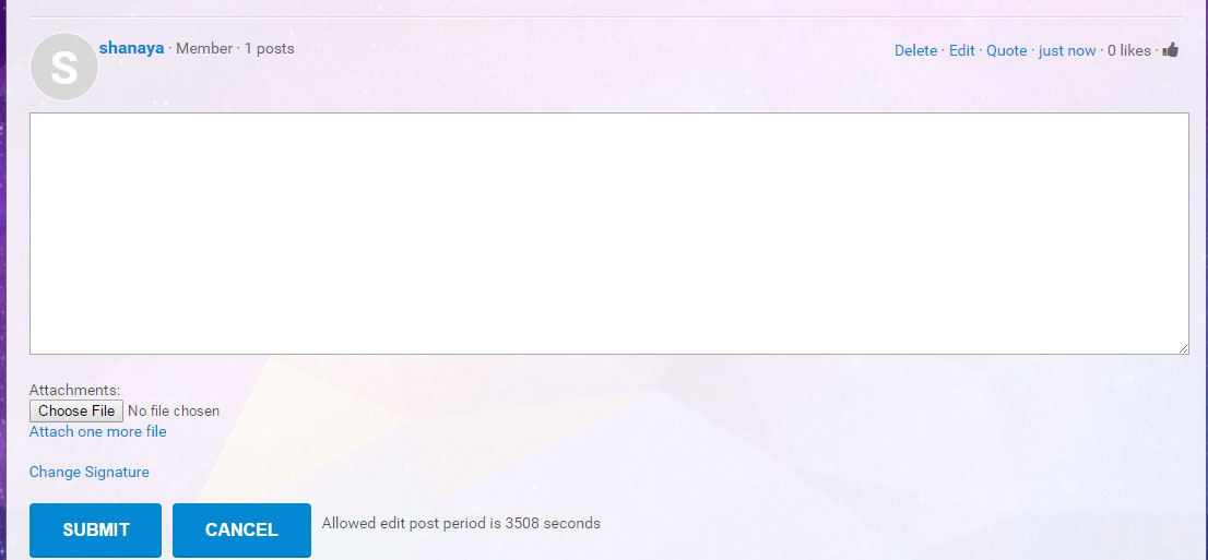 When I try to post the forum, In the first go it shows the Editor in a right manner (ref. forum1.jpg), after hitting the submit button it shows the forum page, and now when I click on edit button from the same page without clicking on any other link (menu) it shows the correct editor as well, I can edit it perfectly. But when I click on any other link (in menu like forum etc...) and then go back to my forum to edit it within the specified time it shows blank text area without any editor and content in it (ref. forum2.jpg).