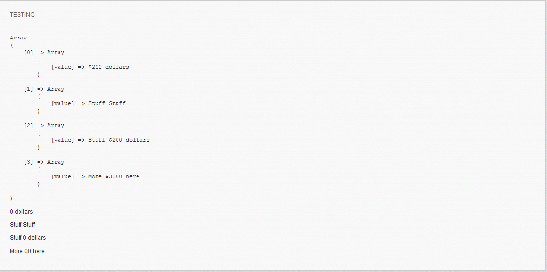Example: "Only $125 for" stored in the db table renders in the browser as "Only 5 for". Is it a purifier or something?