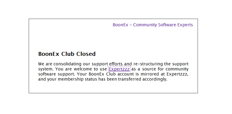 I should have kept my mouth shut. It is interesting to see that at one time, Boonex actually did support their product. If I had not mentioned this, I could have pointed people to that. Of course Expertzzz is gone as well. Of course there are the discussion boards out on the net that Boonex can not scrub; like the one complaining that they were paying a yearly licensing fee for 5.5 support and the support sucked. LOL. Geeks, making the world a better place |
