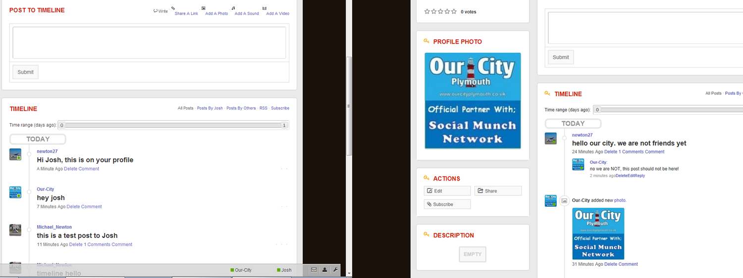 i already see one thing about the timeline in the trac Timeline: typo in email template but its not only about that.. its not about typo in email.. but the thing that make timeline disapear if someone publish a lot of private stuff... looks like timeline dont simply skip the private things.. its show blank stuff.. so all the block is blank and you have to wait that another member post public stuff to see again things in the timeline block on the index page I don't see the issue I reported in trac ...