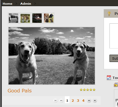 But it looks like it just loads the array into the variable and not a single value (which is what I need, I think). I'm ok with just pulling the first gallery image for my little left column photo here - but wouldn't mind having the mini thumbnails and pagination available like it is on the profile page.