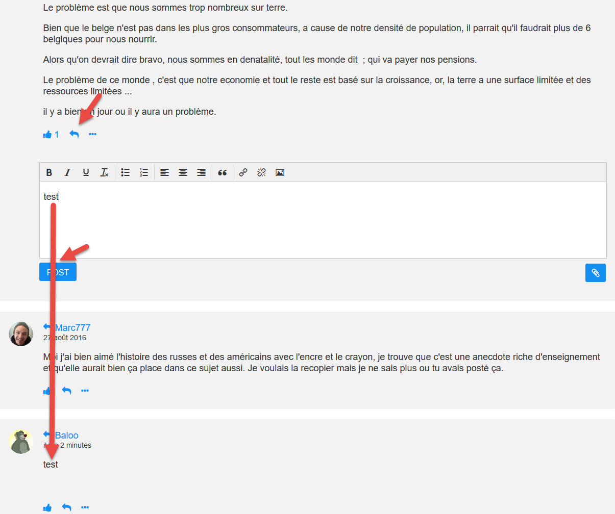 So we do not know "quote" an answer? I do not understand, on each answer, you have an answer button, this suggests that you can respond to each speaker since aditeur opens at that location. Baloo |