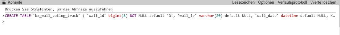 SQL has the table CREATE TABLE `bx_wall_voting_track created. Now wait for the error messages to come or not. Thank you very much Leonid. |