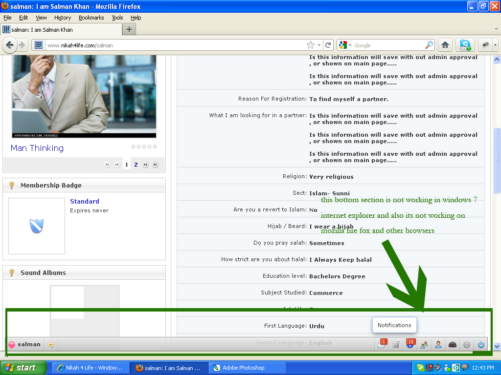 please use this user ID and password and go to bottom and check the bottom , I also attached the image here in this , you will better understand , only Log Out is working rest of other , Notifications, Mail and other are not working , please tell me why?