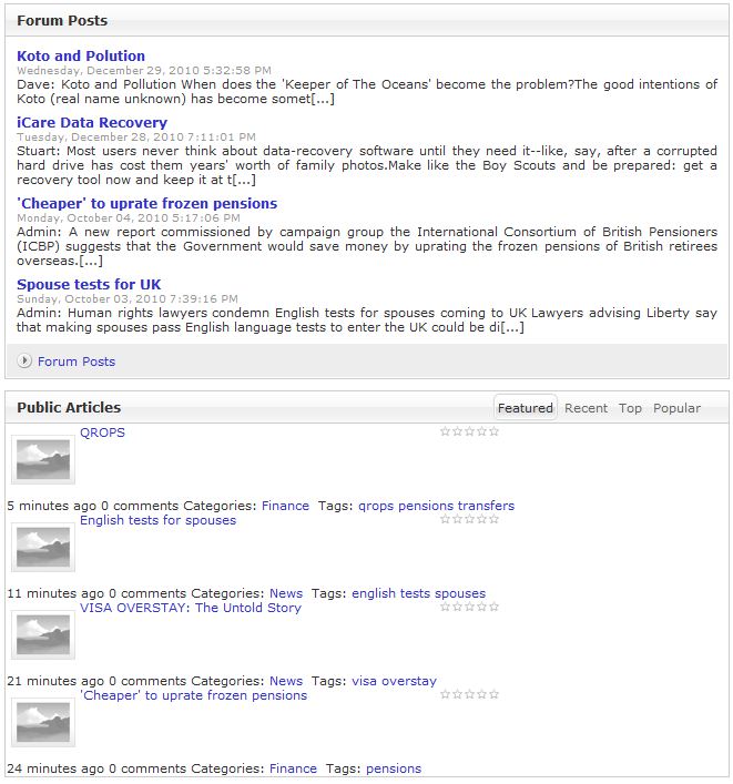 Hi, I've just updated to V2 of the Ultimate Articles Mod. The Articles show up on the Home Page under Public Articles and they show up as Categories rather than showing the article proper. Also, my articles are listed under 'Finance' but they are not showing under the articles Categories. Regards, Stuart There are none so blind as those that will not see. | ||||||||||||