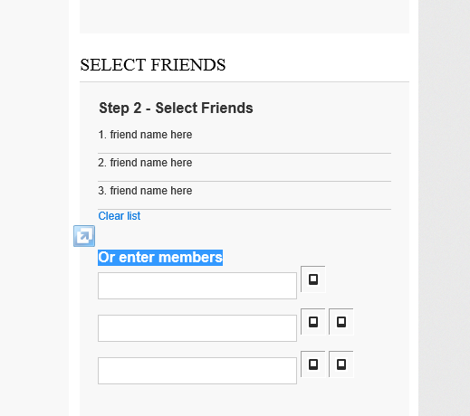 There is a Friends box that contains pics of all friends. To select a Friend, you click on the friend's thumbnail the same way as how you click on a Gift to select it. I will re-word the blocks on that page to spell it out clearly. When you have friends in your Friends list, and you go to give a gift, the STEP 2 says SELECT FRIENDS but there is NO way in the module for you to click on anything to add any friends. All that is there is text, with no control added t othe programming to choose from a list of friends or have any input field. Supposedly this was fixed in 2.0.2 patch, but it has been tested on D 7.0.5 in both IE8, IE9, and Firefox without any success.
