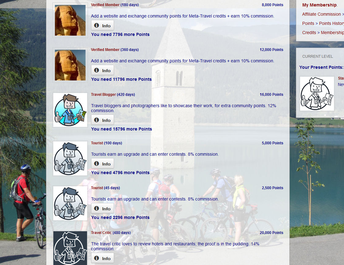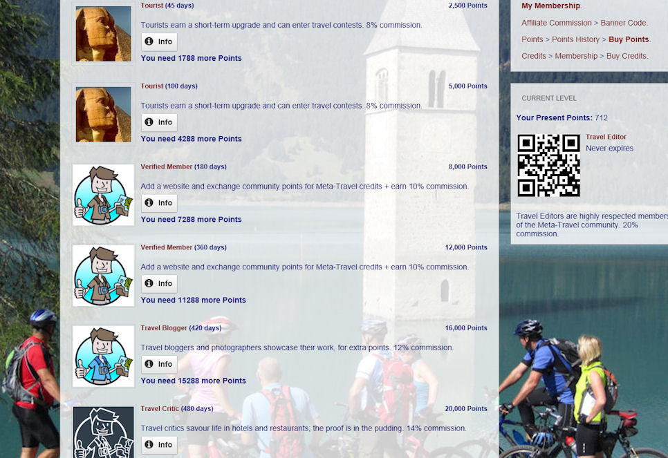 I don't know what's happened but since I upgraded, the Member Points block no longer shows up on the profile page _modzzz_point_block_profilepage but it does on the account page _modzzz_point_block_acountpage. TravelNotes.org - The Online Guide to Travel |