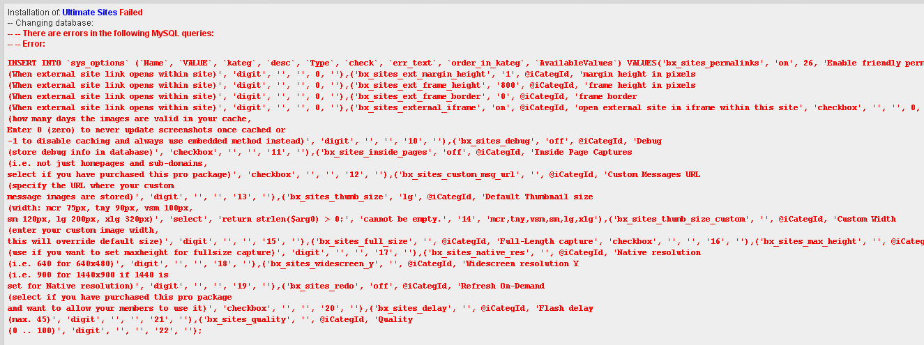 After some install/uninstall issues with UltimateSites I've found myself in the below hell hole (see pic) when trying to install 2.0.4 and need help out. 7.1 My favorite number |