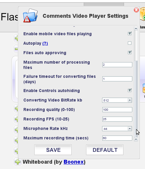 For me, "video comments" as wel as "record video" quality has always been horrible. Looks like bad foreign overdubbed movies where audio and video never sync, there are stutters in the playback, and slow downs and speed ups as if it is trying to work but can't. This is the case with three different computers and webcams at two different locations. It is disgusting and it has never been resolved. I believe this is a codec problem in the conversion from live webcam audio/video stream to a file on the server. I do some video conversions in my profession and from experience this happens when one extension can't be converted to another correctly . BOONEX PLEASE HELP. Someday, Someway. |