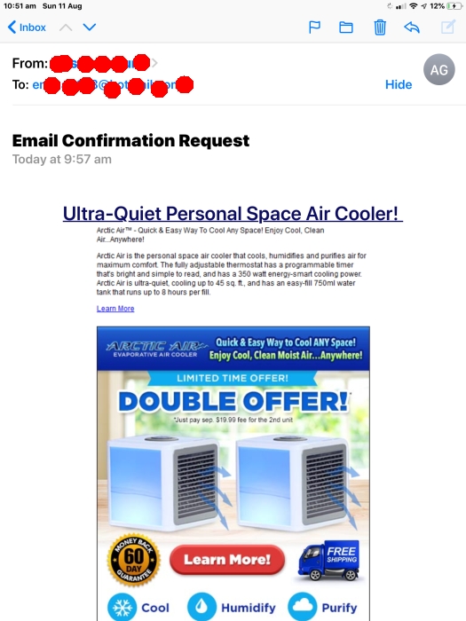- When other people join, they say the verification email doesn't arrive, or in some rare cases it's nothing more than an ad for some spammer. (See attachment) This seems to be the case with people using hotmail.