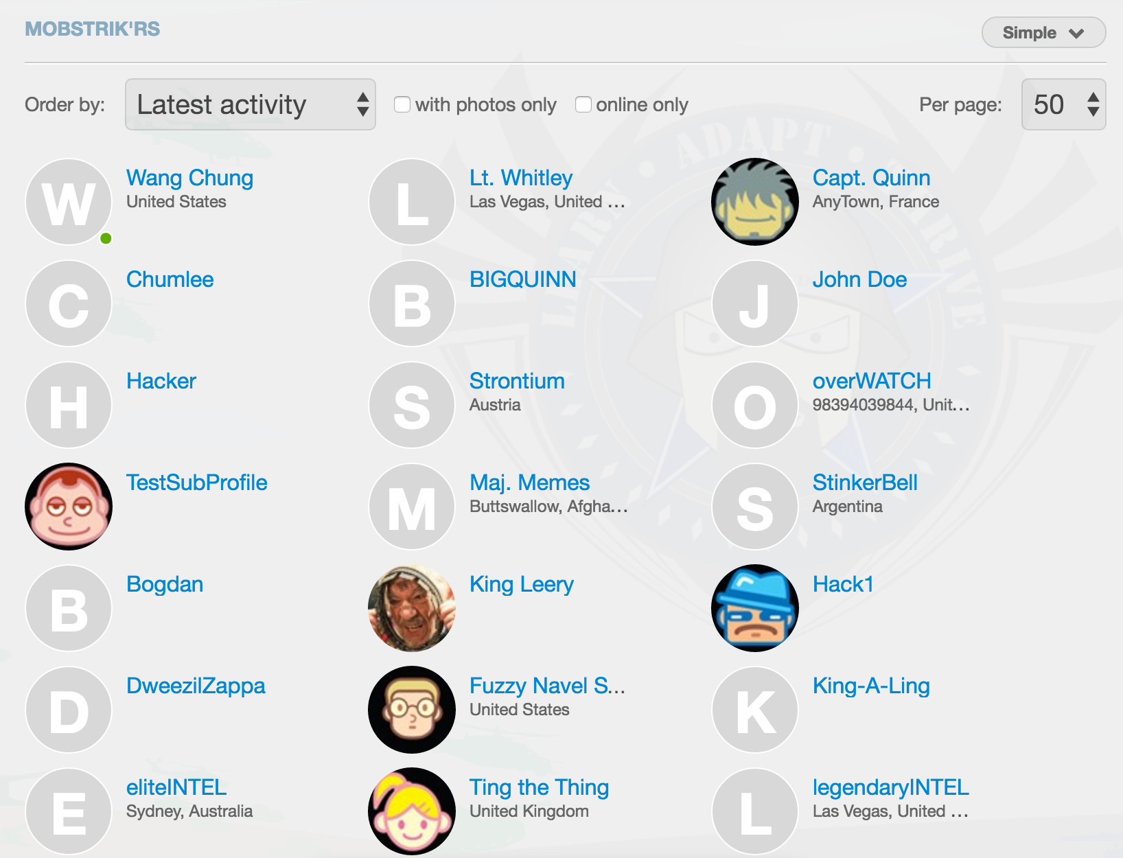 When the browse main page comes up in simple view it shows the full name and the country below it but no game state. If I click extended view it shows the full name and the game state.