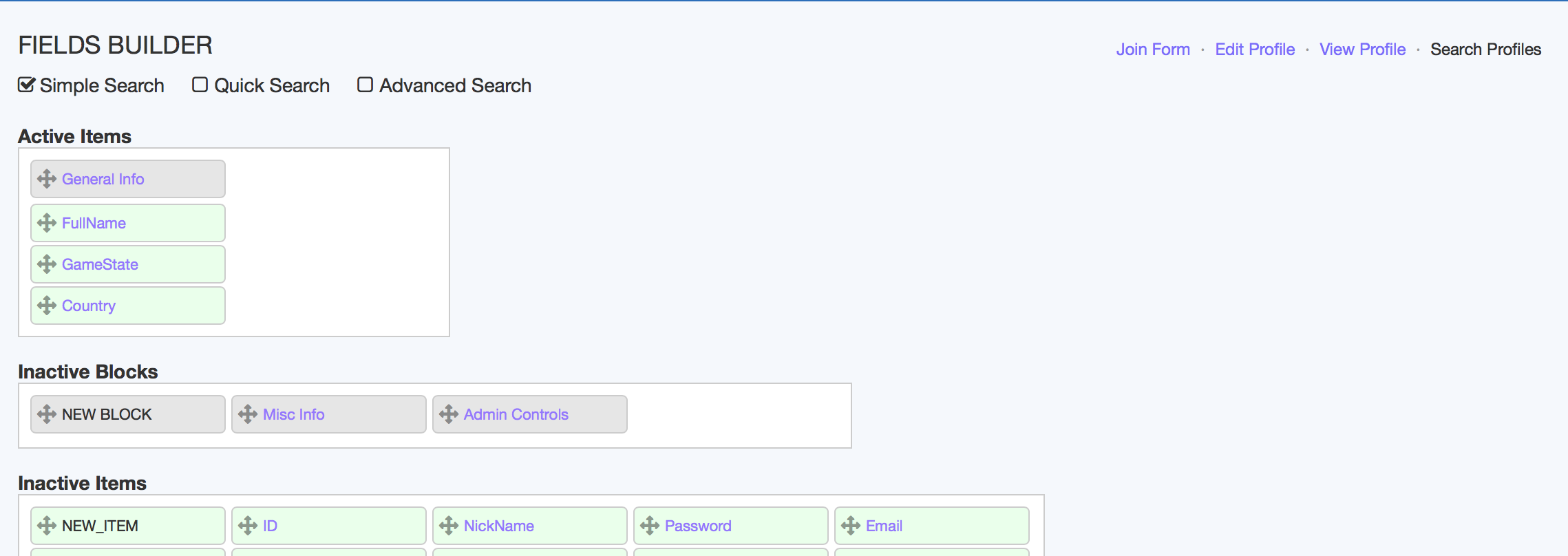 Okay, i've got it set up (at least in the profile fields) where I want the three items to be shown