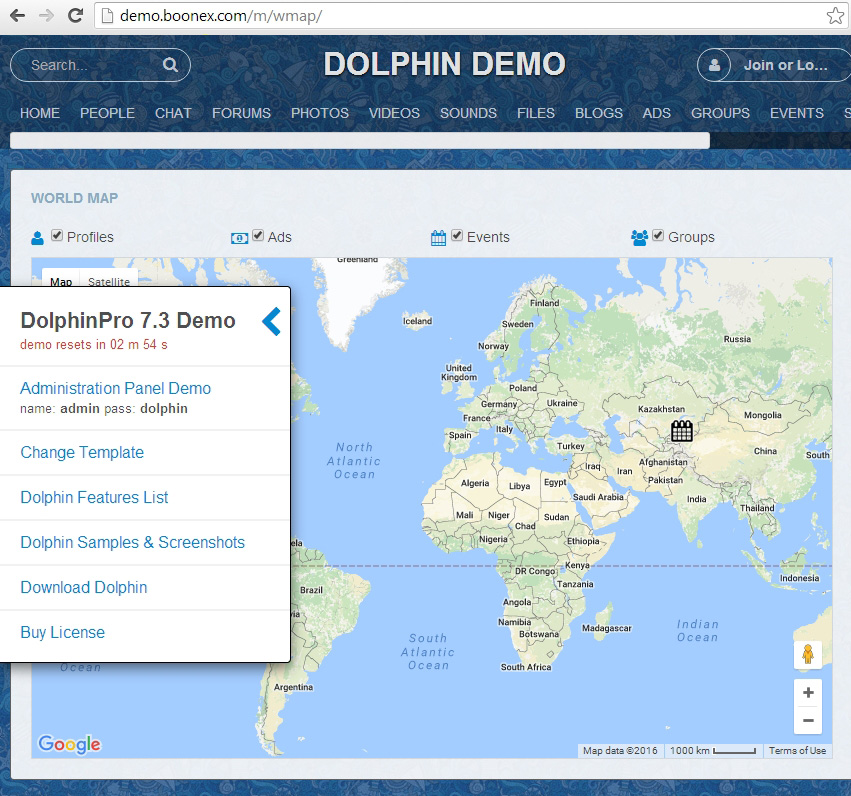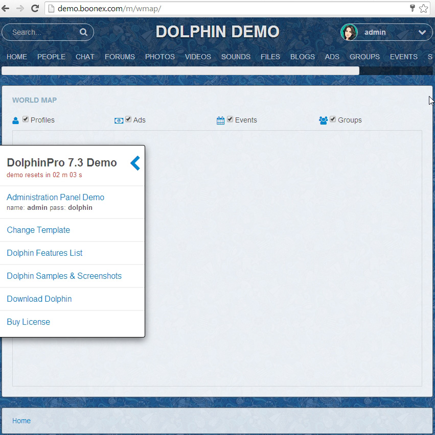 Tested on dolphin 7.3.3 boonex site, when you login example with admin account, the world map disappears. NOT LOGGED: Templates and Modules for Dolphin 7.3 http://www.boonex.com/market/posts/Giovanni_m | |