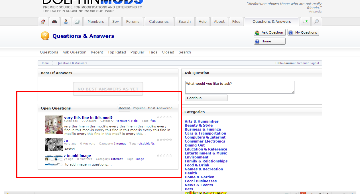 This is the support forum for the Answers mod.