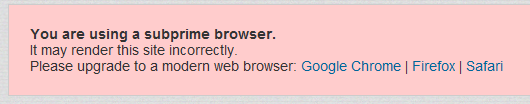 my demo site for dolphin7.1 has alerted me "You are using a subprime browser" . My site url is :www.meetmesns.com.