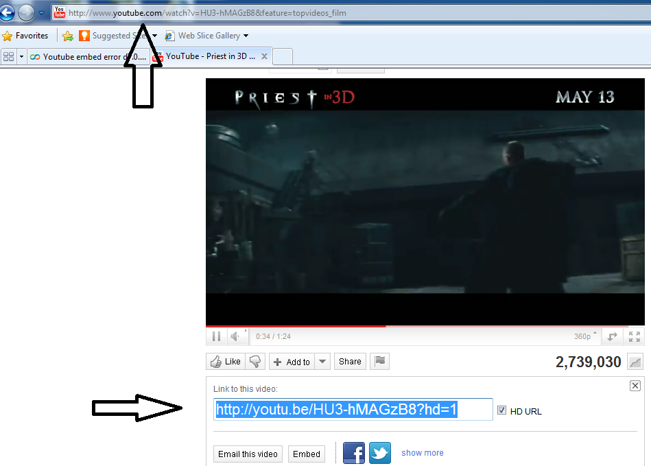 just look at the url   you can't tell there is something wrong with it     http://youtu.be/jc-DX3S_QMw     youtu(dot)be    seems youtube messed up there embed code or changed it so people cant use it anymore.