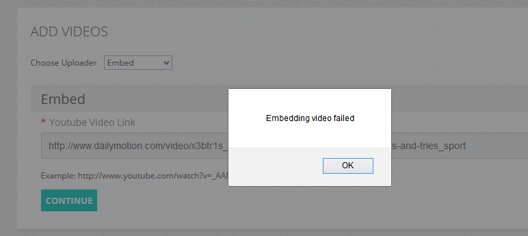 The problem is the checkEmbed function in the upload.js file. YouTube uses SSL connection to their videos; if you grab the video links, it will grab the https://