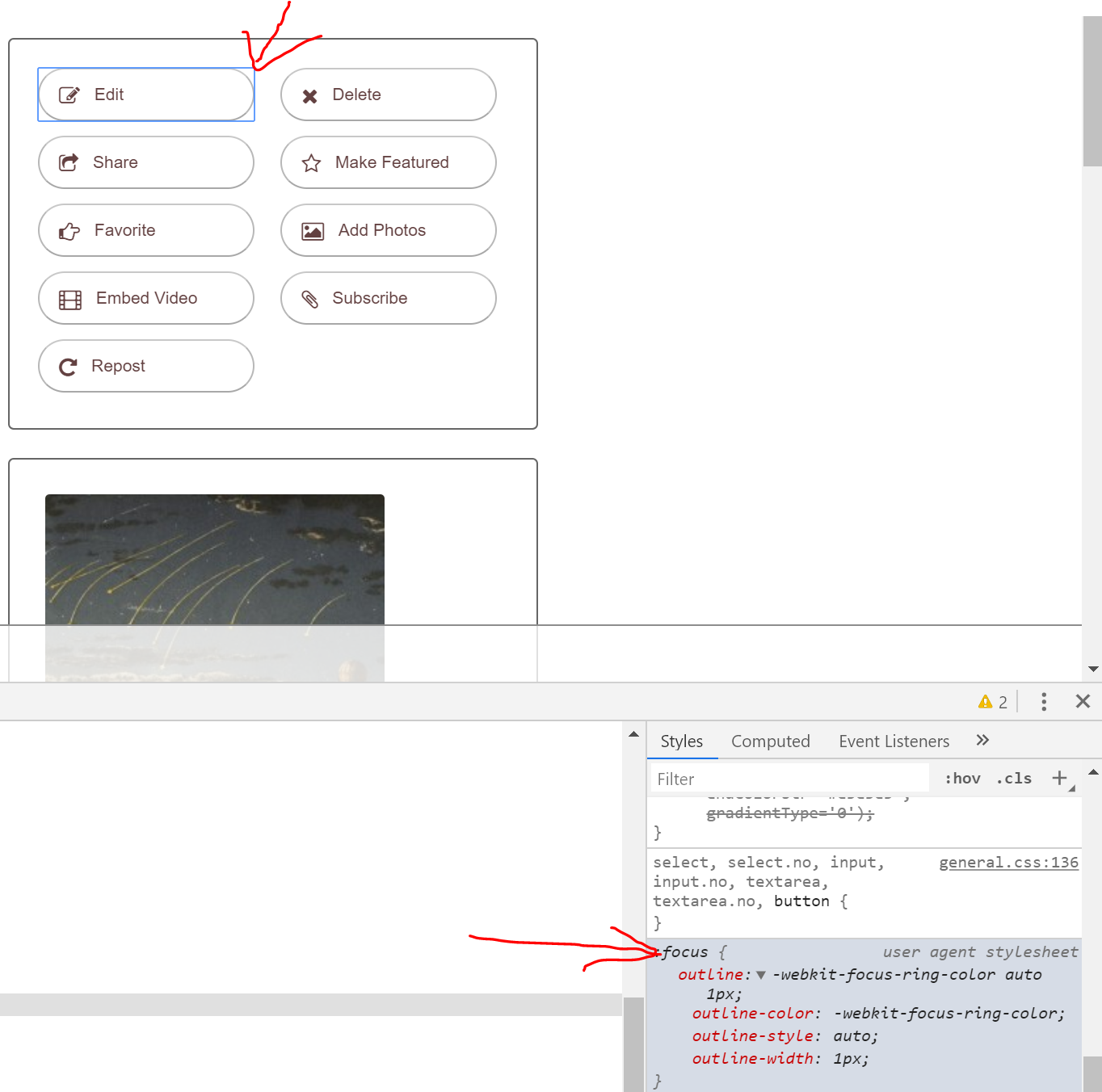 There is a blue border around the button when state is focus (click hold). When analysing with the browser one sees "user agent stylesheet" which says this would be browser fallback.