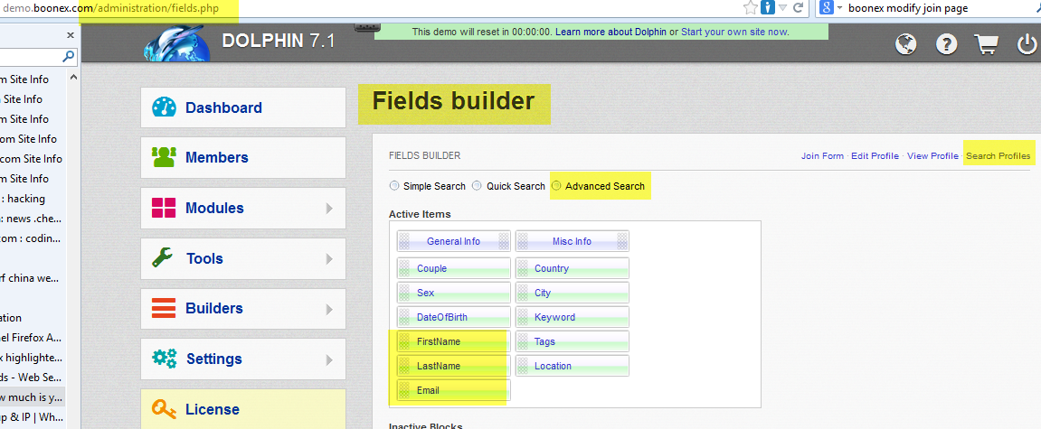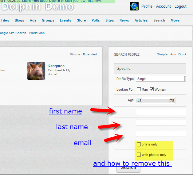 hi..i added three blocks in search people > advance option.. but its not showing the field name..but its showing the text area.. anyone know how to fix this...i checked on dolphin demo site..