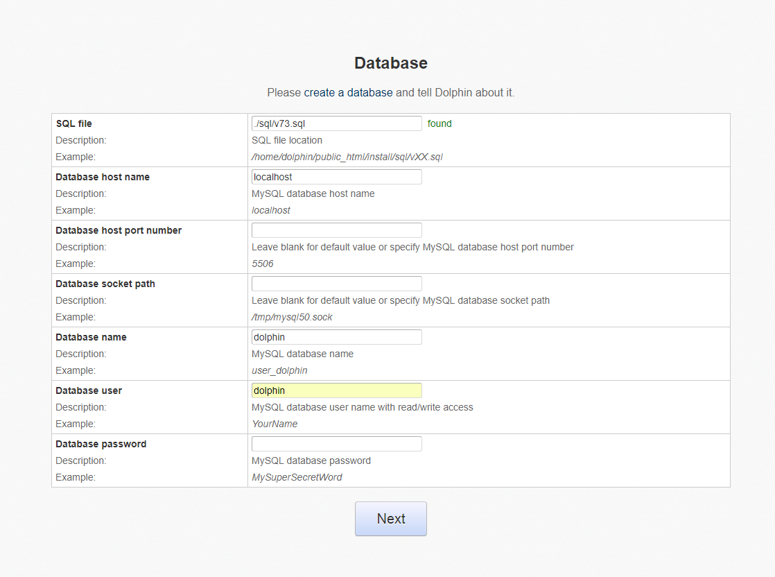 Database Password.
