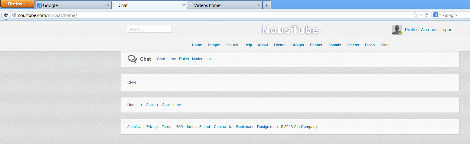 have you set up your captcha here http://www.google.com/recaptcha and then entered the keys here http://yourdomain.com/administration/advanced_settings.php?c=Security have you set up your media server in flash apps in your admin control panel under modules.ifusing rms, must provide the ip address for the rms server andin the rms server your domain name must be added to the acess list. caredesign.net |