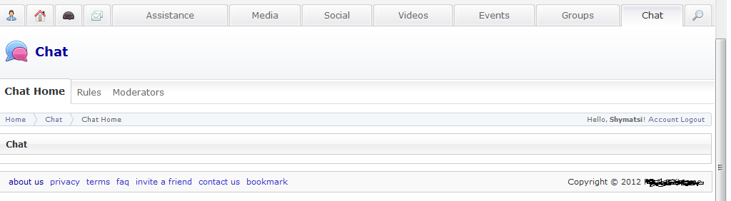What happens is when I click on the chat page now, I get the page, but no chat application at all, it doesn't appear.. just a blank area under the title "Chat".. pic attached..