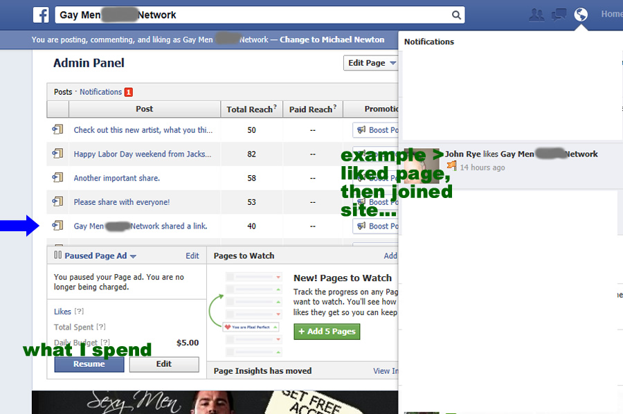 I also pay for boosting post on the page, in turn anyone on FB that has "liked" gay things, the "boosted" post are shown to them to like the page. I have a friend that confirmed this when they were presented with a page they should like, my gay page. ManOfTeal.COM a Proud UNA site, six years running strong! |