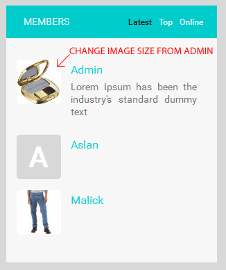 how to change the image size for member list in the home page from admin panel or administration,