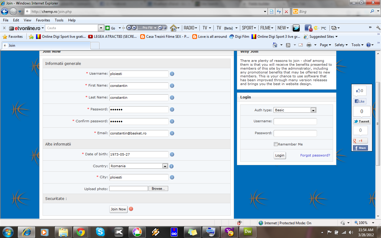 I tried to join your site with ie 8 and i had no problem. It works alright. Try to clear your browser cache and cookies. so much to do.... |