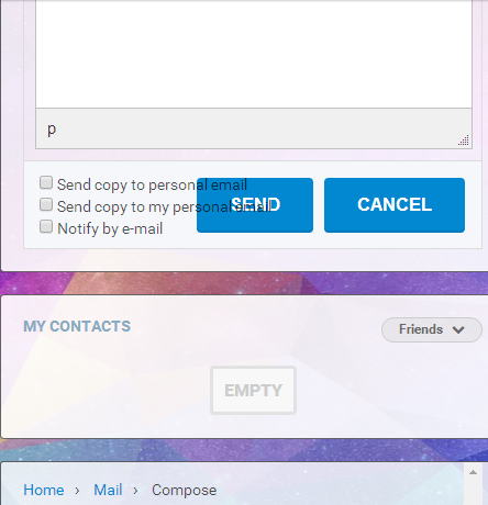 - send mail page - text is on top buttons