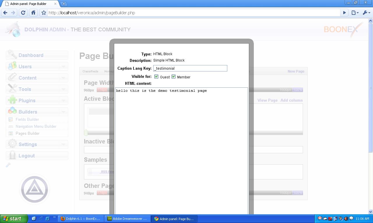 when i edit the new HTML block the editor(tinymce i think) doesn't show up and the changes don't get saved, also cancel button is not working, currently i am directly inserting data in the database(pagecompose table). anbody with a solution. i have tried it in different browsers(firefox, ie, chrome), but no success.