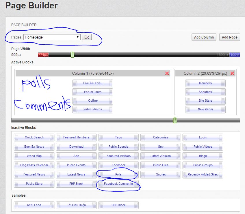 move the Polls and Comments block to the homepage in PAge Builder see attached |