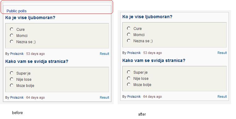 when you have time try and change the design box from 1 to 3 for polls block and you'll see what i am talking about.