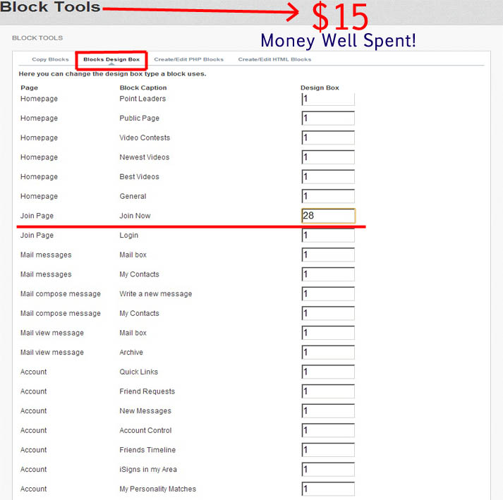 You can easily change the JOIN Form Block to design box 0.....or any other design box you have. (See DeanosBlock Tools.jpg attached) Here is were you can find that mod- Deano's Block Tools