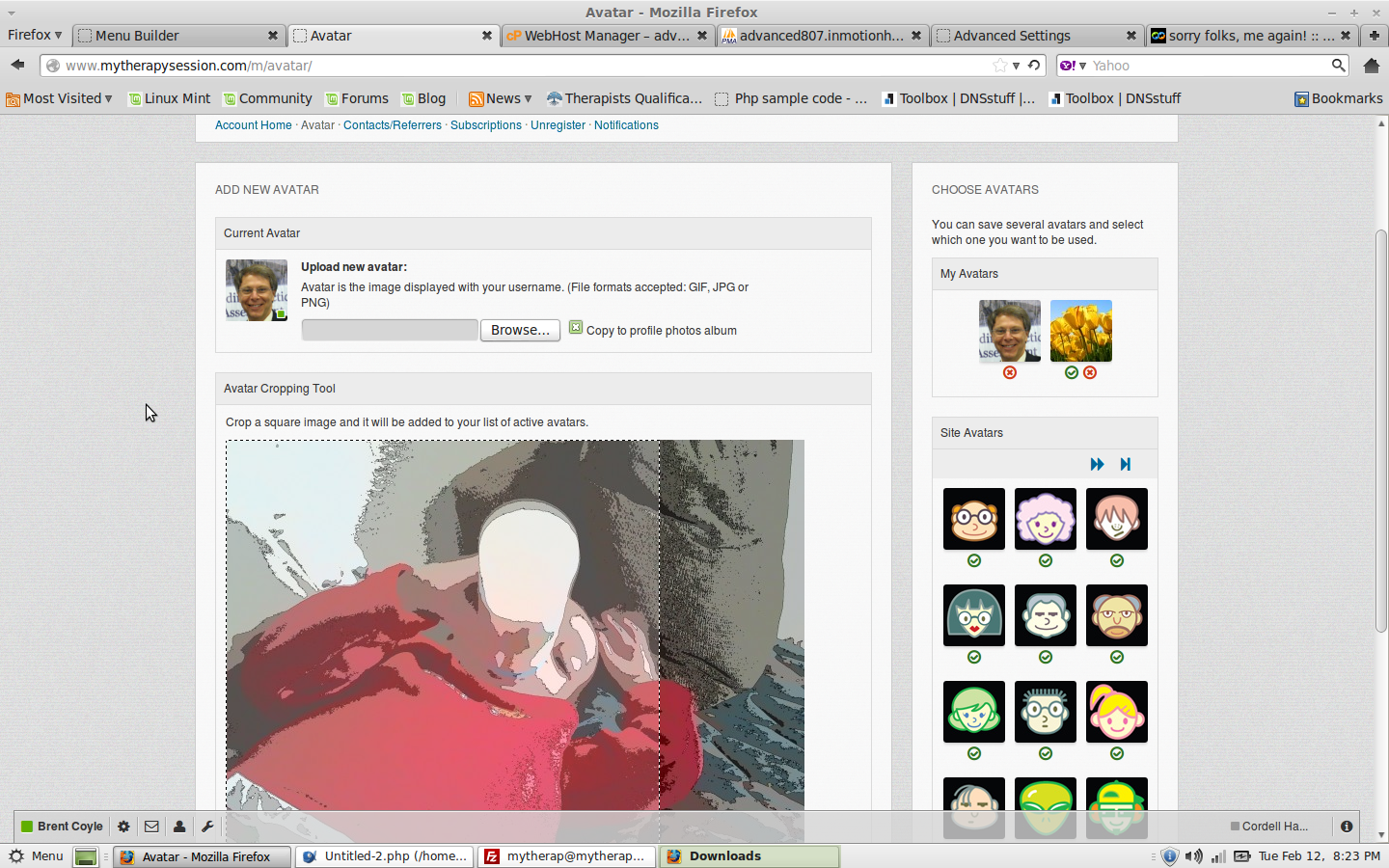 The avatar "page" is modified. The proceed, again, you select an image, it uploads and then activates the cropping tool, then you "Add Avatar"