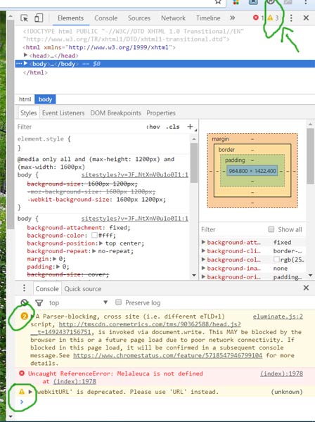 2) In your Chrome browser (not sure how to see this same info in Firefox), go to your page, right click your mouse, and click "inspect". This will open up elements coding info. FIX all triangular exclamation point problems (see attached pic). They should relate to what is preventing your page from not displaying in SSL.