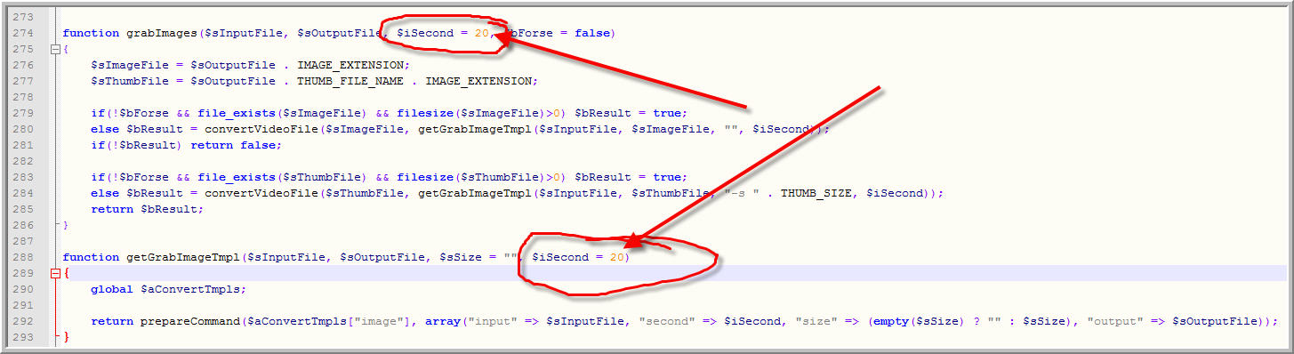 Line 290: function getGrabImageTmpl($sInputFile, $sOutputFile, $sSize = "", $iSecond = 0)