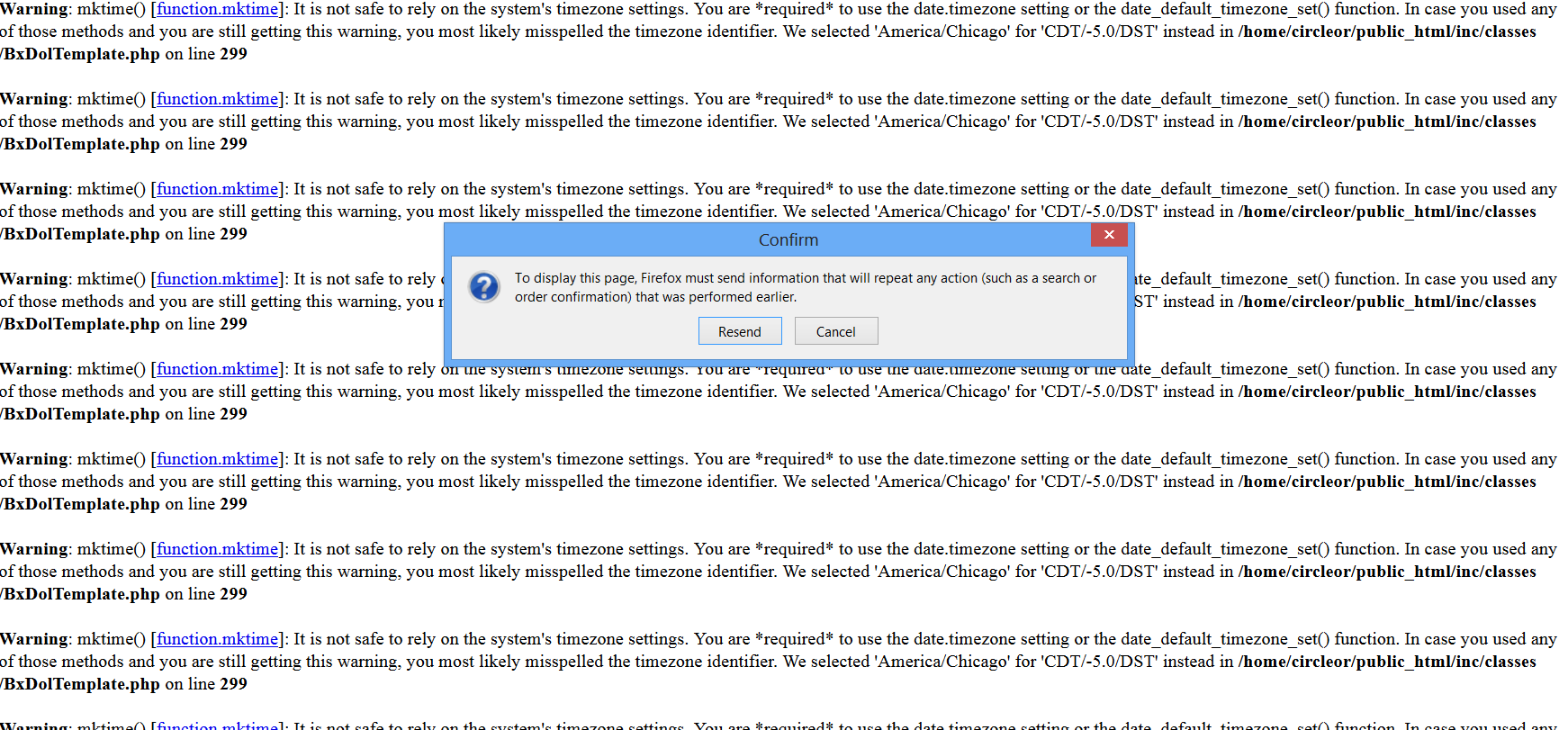 Warning: mktime() [function.mktime]: It is not safe to rely on the system's timezone settings. You are *required* to use the date.timezone setting or the date_default_timezone_set() function. In case you used any of those methods and you are still getting this warning, you most likely misspelled the timezone identifier. We selected 'America/Chicago' for 'CDT/-5.0/DST' instead in /home/circleor/public_html/inc/classes/BxDolForm.php on line 597