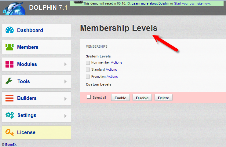 i tried in dolphin demo site through admin page...membership module still showing in settings..see the attachment...