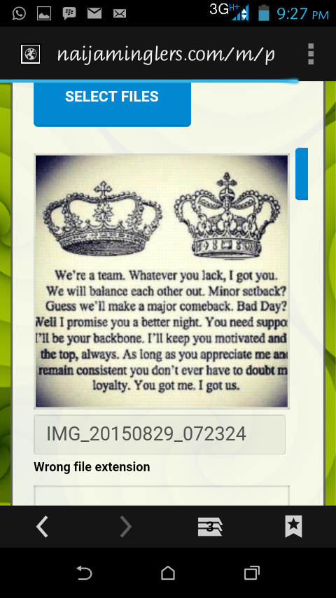 Just to be clear, did you add 'jpeg' or 'jpng'? Also, can you upload an affected image to this thread? oh ,i meant jpeg rather. Still the same errors, major users are from mobile, pleae help! Seems i notice something,only pictures that end with capital JPG uploads fine. Picture of affected image below: |