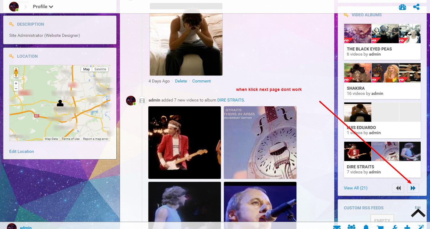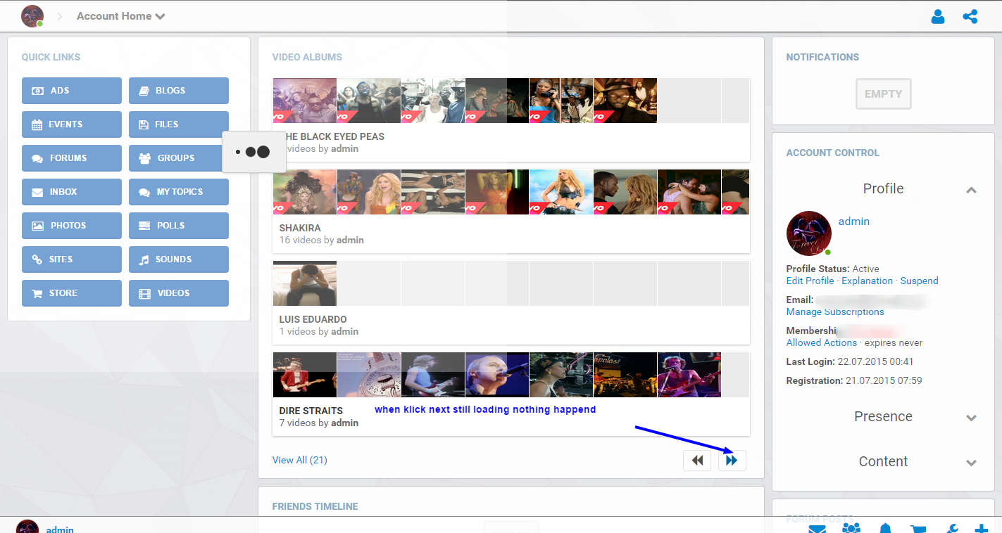 on account on video albums jou can klick to next page still loading nothing happend olso on profile page same nothing happend other pages working fine |