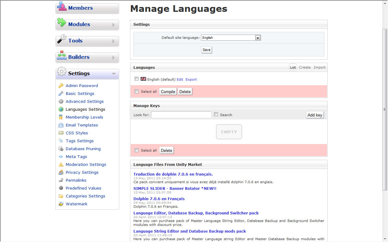 Administration > Settings > Manage Languages.