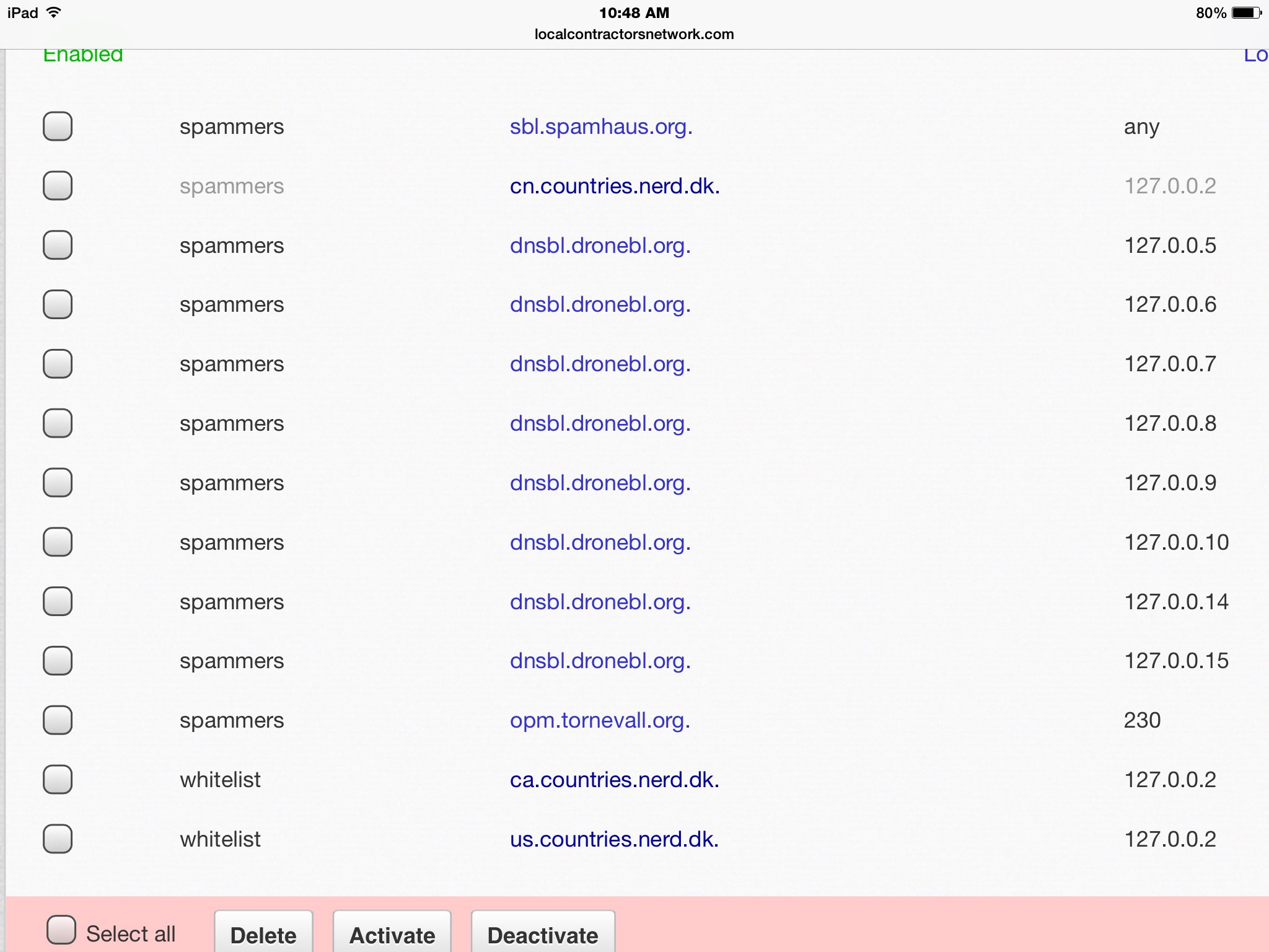 ('spammers', 'zomgbl.spameatingmonkey.net.', 'any', 'http://spameatingmonkey.com/index.html', '', 'This zone is guaranteed to block 100% of all IPs because it lists everything (0.0.0.0/0). Use it only if something is whitelisted.', UNIX_TIMESTAMP(), 0);