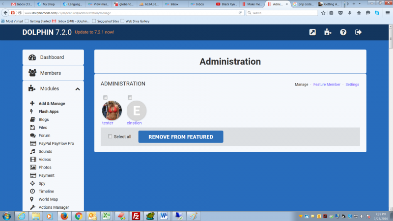 This mod also overcome the problem with default Dolphin where Administrators cannot figure out how to feature a member. It adds a Feature/Unfeature button to the Actions block of the Profile page.