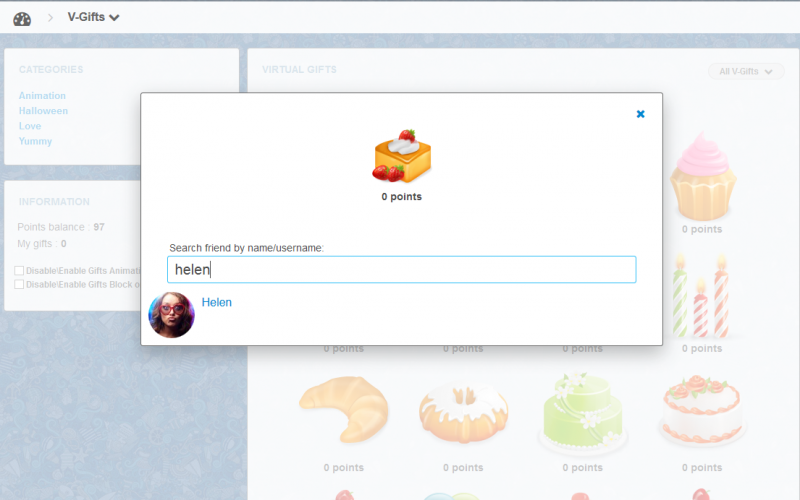 5) Allows to set price in points for each virtual gift.